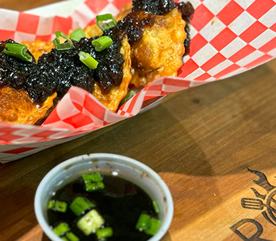 Handcrafted Dumplings with Brisket, Caramelized Onions, and Served with an Au Jus Style Sauce