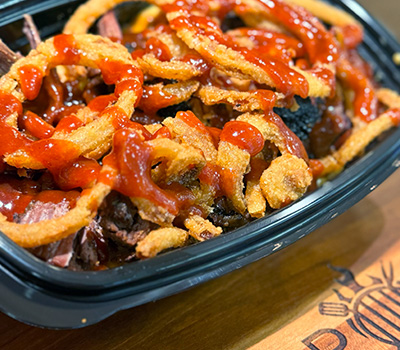 Dipper fries, Queso, Gravy, Brisket, Fresh green onion