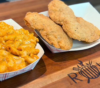 (2) Choice of Meat, Coleslaw, BBQ, Pickles. Side of Mac & Cheese OR Fries